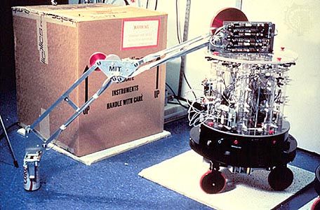 Another product of the microworld approach was Shakey, a mobile robot developed at the Stanford Research Institute by Bertram Raphael, Nils Nilsson, and others during the period 1968–72. The robot occupied a specially built microworld consisting of walls, doorways, and a few simply shaped wooden blocks. Each wall had a carefully painted baseboard to enable the robot to “see” where the wall met the floor (a simplification of reality that is typical of the microworld approach). Shakey had about a dozen basic abilities, such as TURN, PUSH, and CLIMB-RAMP. Critics pointed out the highly simplified nature of Shakey’s environment and emphasized that, despite these simplifications, Shakey operated excruciatingly slowly; a series of actions that a human could plan out and execute in minutes took Shakey days.